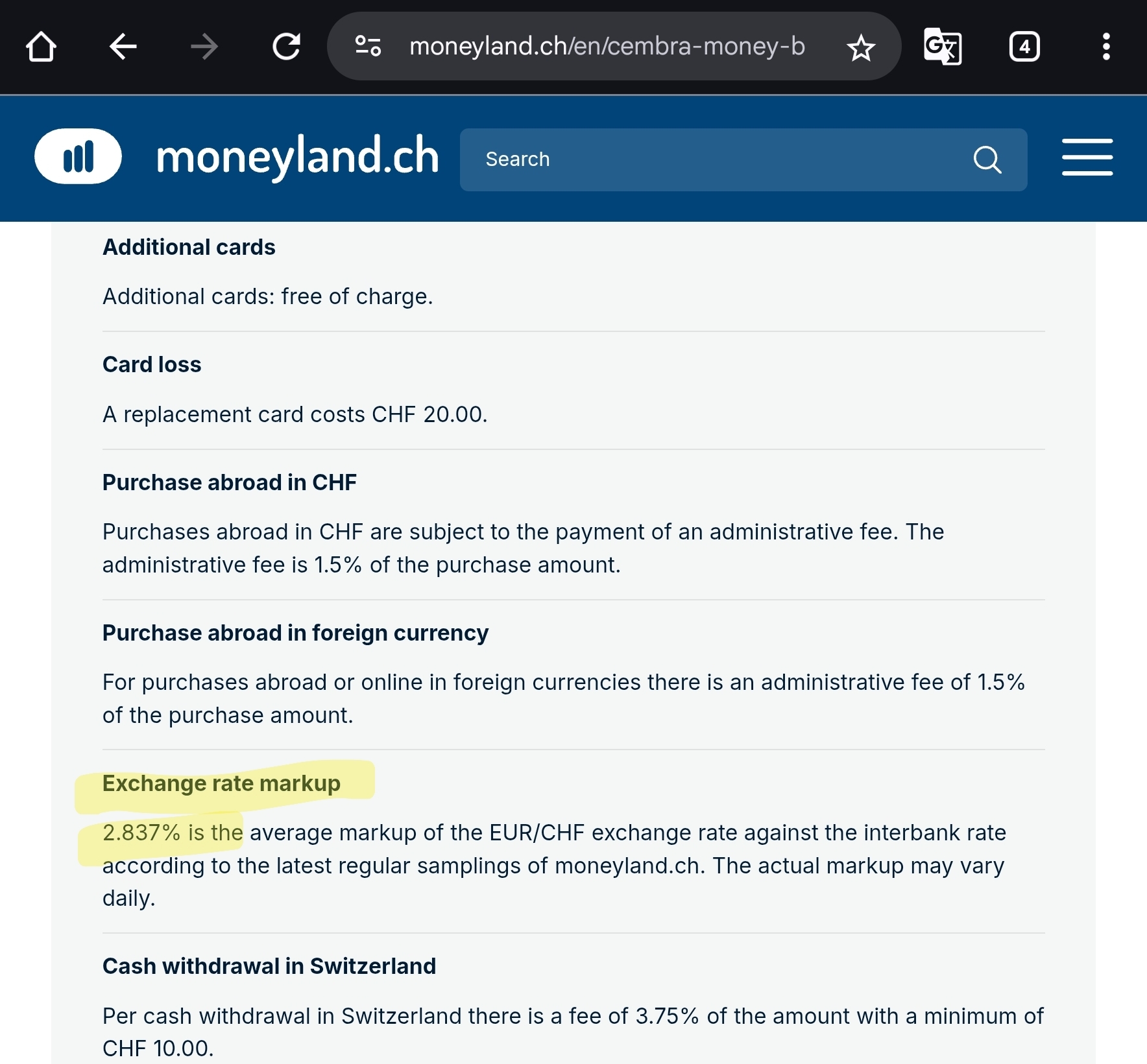 Mit gegen 3% versteckter Fremdwährungsgebühr via Wechselkursaufschlag zum Interbankenkurs ist diese Kreditkarte definitiv schlechter als radicant, Neon und sogar Yuh.