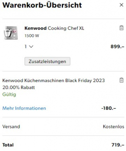 Piratentipp: unter https://www.kenwoodworld.com/de-ch/promo/promotion kann man die Garantie bis 5 Jahre verlängern wenn man das Produkt registriert. Somit könnt ihr Euch die CHF 141, die Galaxus für die Garantieverlängerung bis 5 Jahre anfordert, sparen 😉