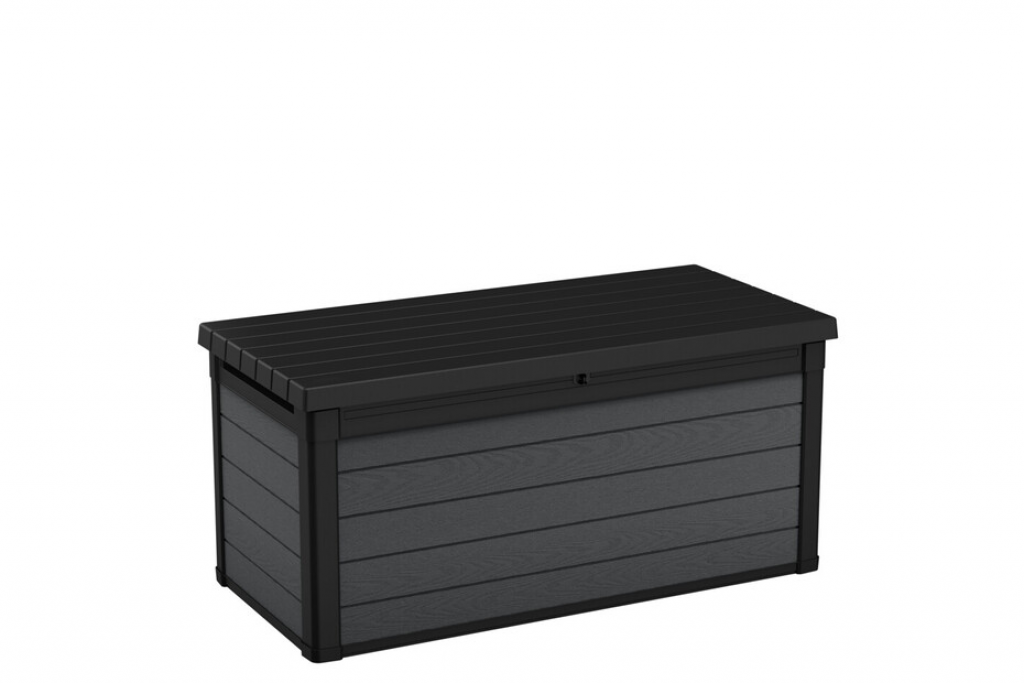 Die Cortina Box sorgt dafür, dass Ihr Lebensraum im Freien makellos und frei von Unordnung bleibt. Diese rustikale Auflagenbox in Holzoptik ist aus den neuesten UV-resistenten DUOTECH™ Materialien gefertigt, sodass sie Sonne und Regen standhält und alles vom Sofakissen bis zum Grillzubehör das ganze Jahr über trocken und belüftet hält. Dank des Kolbensystems lässt sich die Box leicht öffnen, während ein abschliessbarer Deckel den Inhalt schützt.