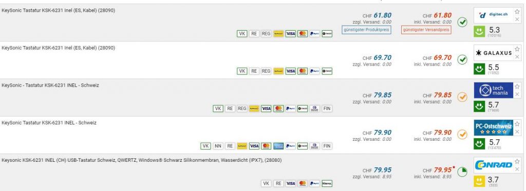 Bei digitec gibt es die KEYSONIC KSK-6231 INEL Tastatur für den neuen Bestpreis von CHF 61.80. Der vorherige Bestpreis und auch zweitbeste Preis beträgt CHF 69.70.