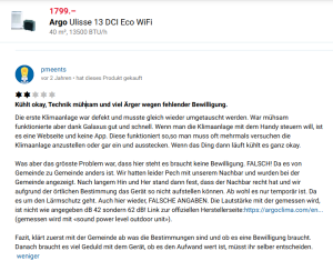 Wobei man erwähnen muss, dass die Ausseneinheit der Ulisse 13 besonders leise ist (nur 42 dba). Bei anderen (bspw. bei der Midea Portasplit oder der Kibernetik hier im Detail) kann es gut sein, dass die Ausseneinheit die Nachbarn stört mit ihren recht lauten 60dba.