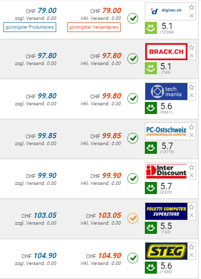 Vergleichespreise liegen bei 99.- und aufwärts.
