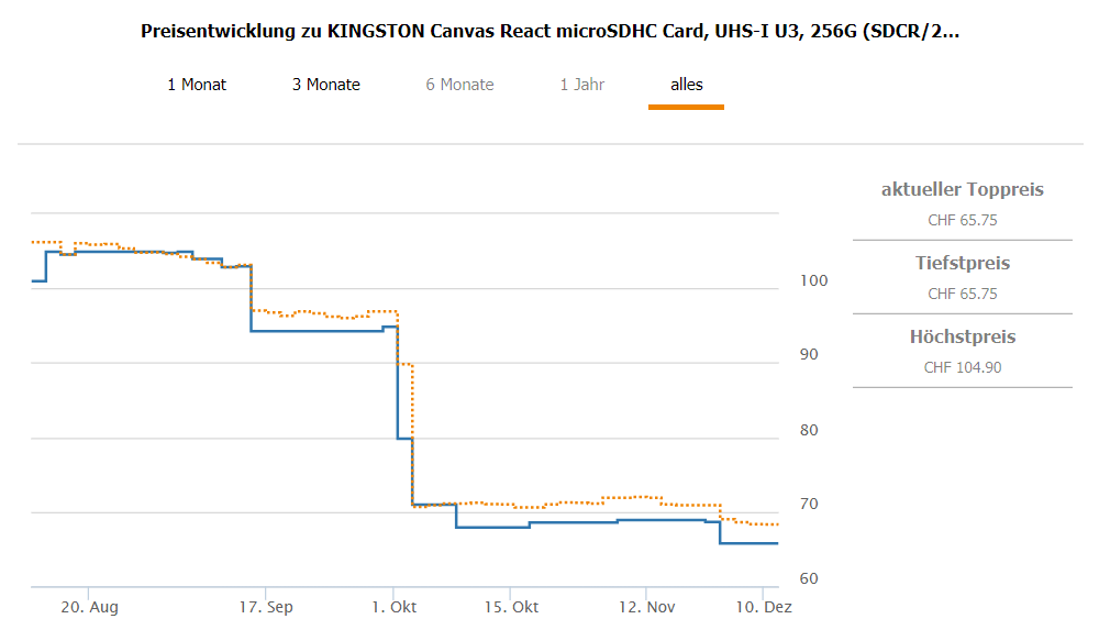 Vergleichspreis für die Karte ist nicht ganz einfach, da die microSD Karte bei den meisten Händlern nicht mehr auf Lager ist.