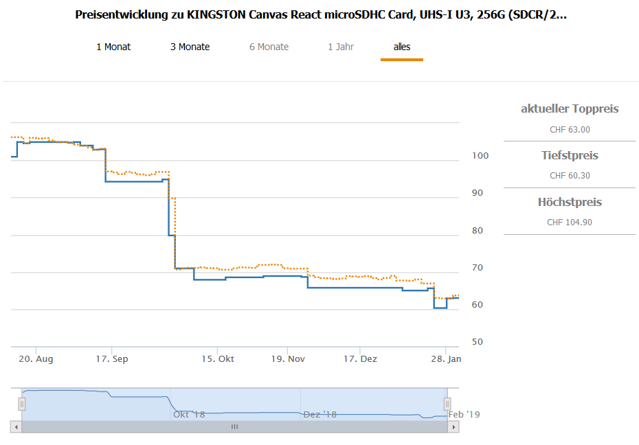 Gemäss toppreise war der bestprice bislang bei 62.90 CHF, der zweitbeste Preis aktuell liegt bei 63.- CHF.