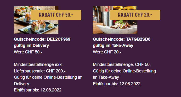 Mindestbestellmenge: CHF 50.- Gültig für deine Online-Bestellung im Take-Away
