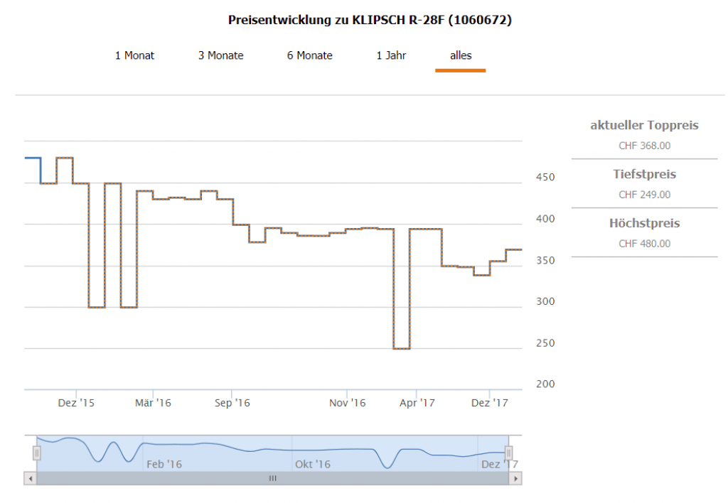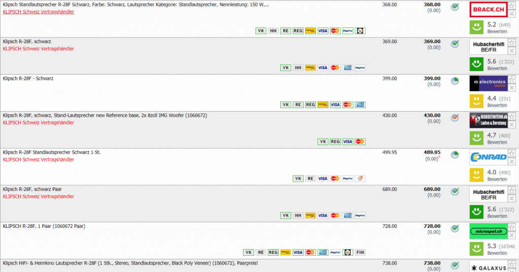 Hier die Preisübersicht für einen Lautsprecher (digitec bietet ein Bundle von 2 Lautsprechern)