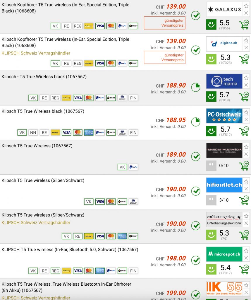 Bei digitec gibt es aktuell die KLIPSCH T5 True Wireless Earphones für 139.- CHF.