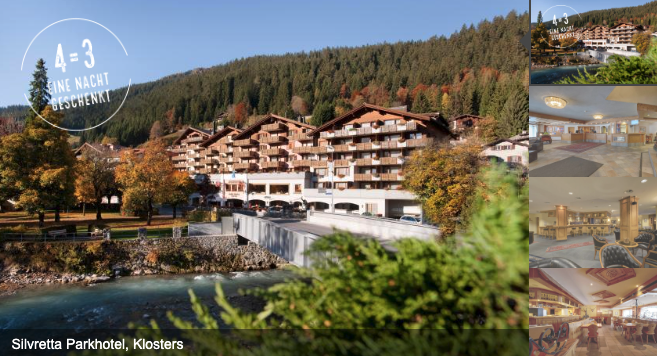 Bei Aldi Suisse Tours gibt es ein attraktives Angebot für das 4-Sterne Silvretta Parkhotel in Klosters im schönen Bündnerland.