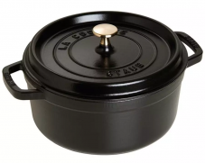 - Bezeichnung: Cocotte 26 cm, rund, Schwarz, Gusseisen