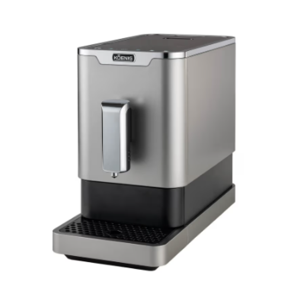 Der Finessa Kaffeevollautomat von König ist ein sehr kompakter Kaffeevollautomat, mit welchem Sie kompakter, schneller und leiser Kaffee geniessen können. Die Bedienung der Kaffeemaschine ist einfach und intuitiv, mit welcher Sie zwischen Espresso, Café Crème und heissem Wasser wählen können. Ebenfalls beinhaltet der Finessa Kaffeevollautomat drei verschiedene Modi mit ECO Funktion und eine Anzeige mit allen Servicefunktionen. Durch ihre Kompaktheit passt die Finessa in jede Küche. Natürlich kann man die Brüheinheit rausnehmen, so dass Sie die Maschine leicht reinigen können.