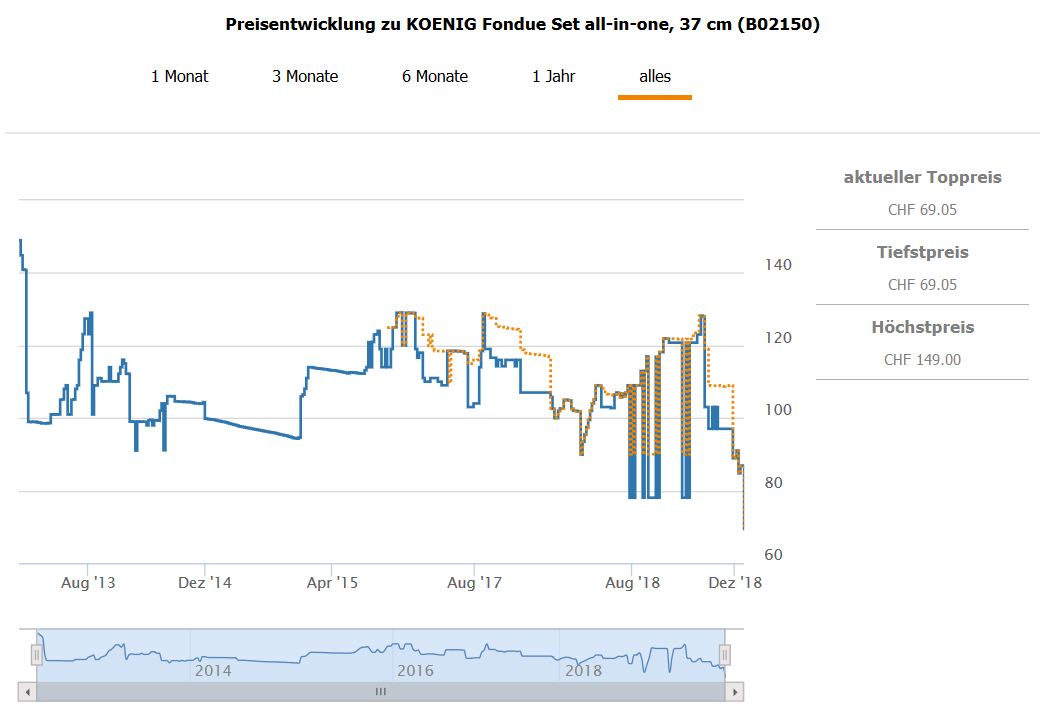 Gemäss toppreise war der bestprice bislang bei 84.75 CHF, der zweitbeste Preis liegt aktuell bei 88.90 CHF.