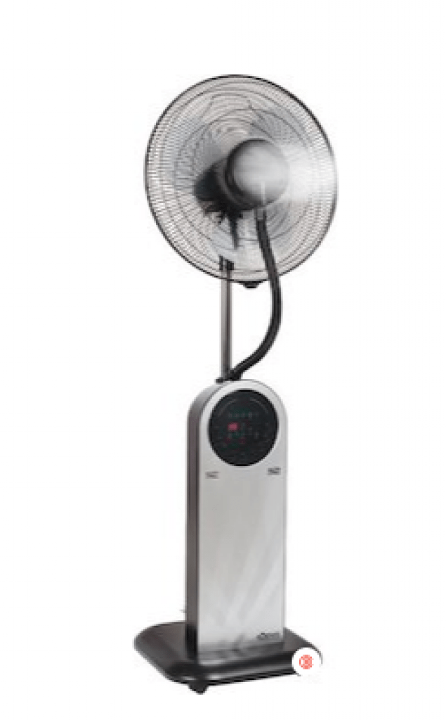 Der Ventilator hat zusätzlich eine Nebelfunktion, bei welcher die Luft mit kühlem Wasser angereichert wird.