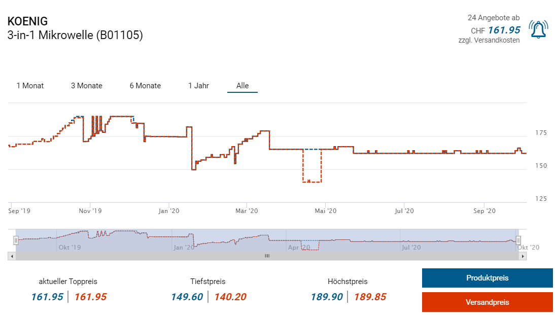 Bei nettoshop kann man sich derzeit diesen hochwertigeren Mikrowellen-Kombigrill zum Preis von knapp 142 Franken sichern. Den zweitbesten Preis gibts derzeit bei microspot für CHF 161.95, es soll sie aber auch schon für knapp 140 Franken gegeben haben.