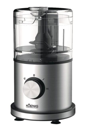 Der Koenig Zerkleinerer Steel Line bietet Ihnen eine Leistung von 280 Watt sowie 0.5 l Fassungsvermögen und eignet sich zum Zerkleinern und Mixen diverser Lebensmittel. Ihnen stehen zwei Geschwindigkeitsstufen zur Verfügung und über den Einlass können Sie auch während des Betriebs Flüssigkeit dazugeben. Das 2-flügelige Messer ist aus hochwertigem Edelstahl gefertigt.