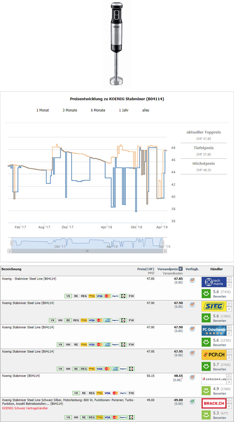 Koenig Stabmixer Steel Line (schwarz/silber) bei Nettoshop zum Bestpreis von CHF 29.90