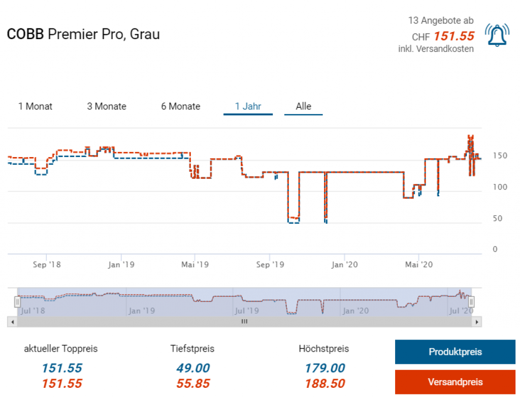 Im Blickdeal gibts diese Woche dne Holzkohle Kompaktgrill COBB Pro Premier zum Aktionspreis von 99 Franken. Laut toppreise liegt der Vergleichspreis bei CHF 151.55, es gab ihn aber auch schon deutlich günstiger, nämlich für etwa 56 Franken.