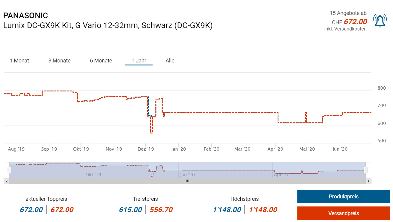 Bei digitec gibts derzeit im Lagerausverkauf ein weiteres Stück Technik zum guten Preis. So gibts die Kompaktkamera DC-GX9KEG-K mit 12-32mm Objektiv zum Preis von 549 Franken. Laut toppreise lag der bisher tiefstgemessene Preis bei ca. 557 Franken, der zweitgünstigste Anbieter (Amazon) verlangt derzeit mindestens 629 Franken dafür.