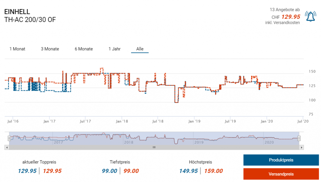 Bei Daydeal gibts heute im Tagesangebot den Kompressor TH-AC 200/30 OF von Einhell in Aktion für 99 Franken. Laut toppreise ist dies zwar kein neuer, aber ein gleicher Bestpreis wie vor bald zwei Jahren Ende September 2018. Zurzeit würde er aber beim zweitgünstigsten Anbieter knapp 130 Franken kosten.