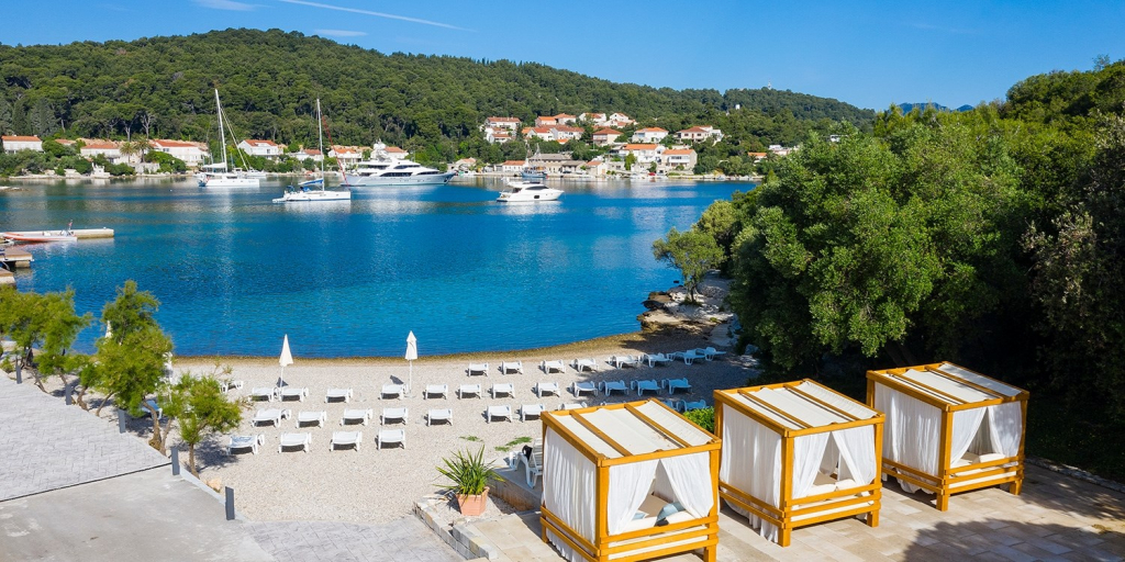 - Das Aminess Port 9 liegt direkt am eigenen Hotel-Strand; hier gibt es sowohl Kies- als auch Sandabschnitte