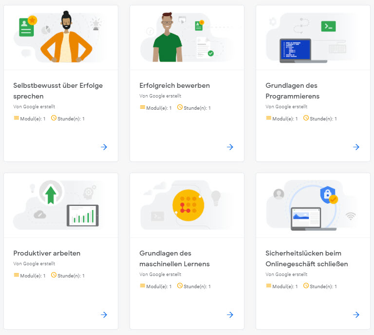 Google bietet diverse spannende Onlinekurse mit anerkannten Abschlusszertifikaten kostenlos an.