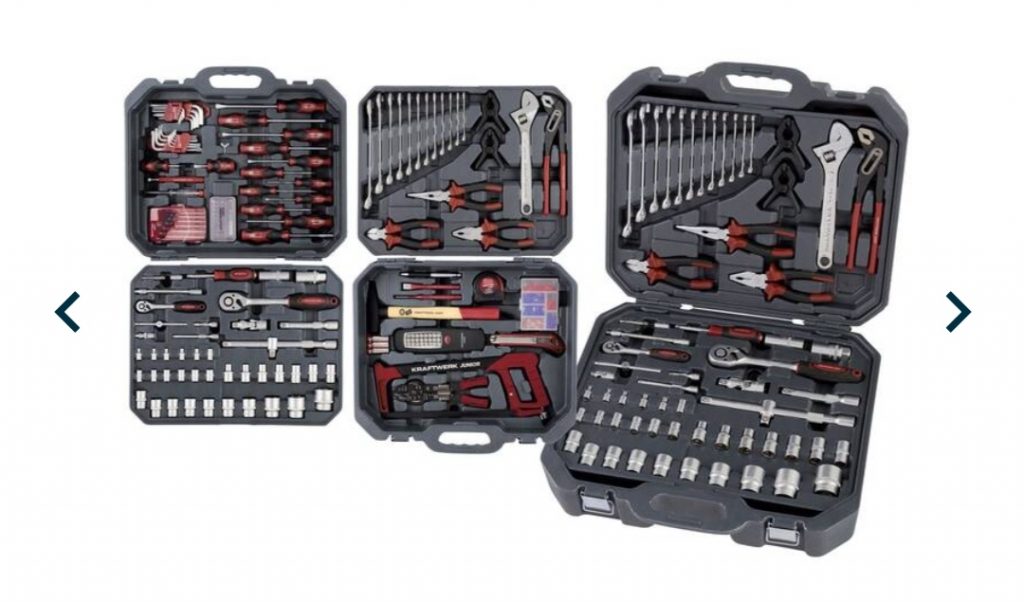 Alle 241 Werkzeuge im Werkzeugkoffer von KRAFTWERK sind übersichtlich und kompakt in einem widerstandsfähigen Kunststoffkoffer verstaut. Die Ausstattung ist ideal für Heim, Hof, Freizeit und Camping geeignet. Er ist ausgestattet mit den wichtigsten Hand-Werkzeugen, mit welchen diverse Arbeiten erledigt werden können.