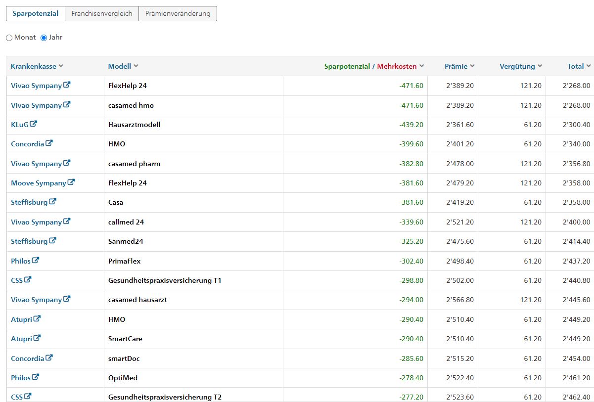 Die beste Seite für die Krankenkassenprämien.Krankenkassenprämien. leider 2024 noch nicht aufgeschaltet