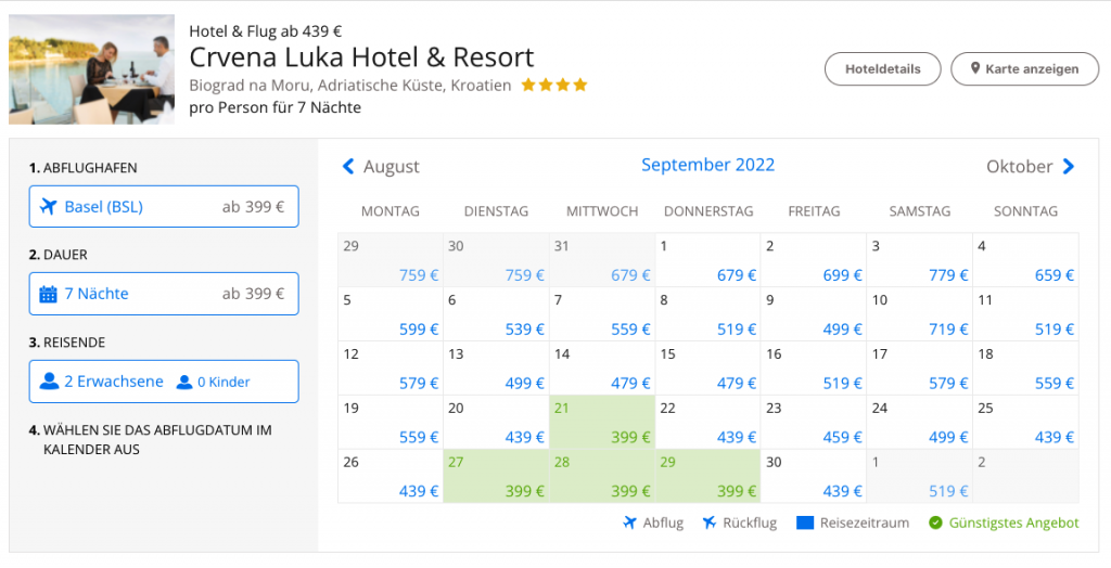 Für die Monate bis zum September 2022 gibt es einzelne Anreisetage, welche bei 659€ pro Person beginnen.