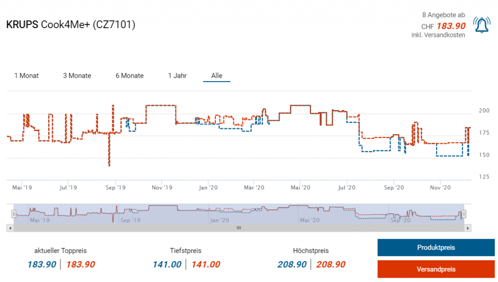 Bei Amazon gibts derzeit den Multikocher Cook4me+ von Krups zum neuen Bestpreis von 112 Franken. Laut toppreise soll der bisherige bei 141 Franken gelegen haben.