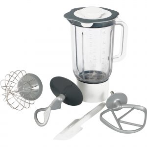 - ENTHALTENES ZUBEHÖR: 3-teiliges Patisserie-Set, bestehend aus K-Haken, Rührbesen und Knethaken sowie ein 1,6 L Acryl-Mixaufsatz