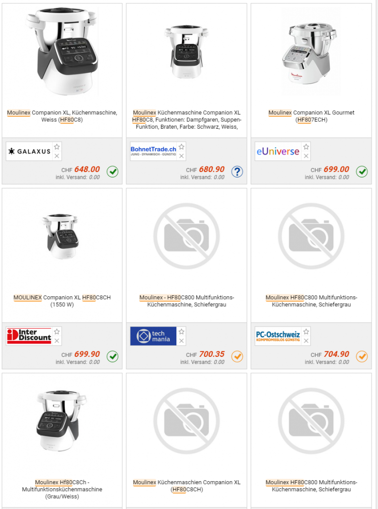 Bei nettoshop gibts derzeit die Küchenmaschine Moulinex HF807ECH Companion XL zum Aktionspreis von 499 Franken. Laut toppreise kostet sie beim einzigen Händler, der sie im Sortiment hat 699 Franken, die Maschine HF80C8 indes bei CHF 648.- (weiss aber nicht wie sich dieses Modell unterscheidet vom Deal).
