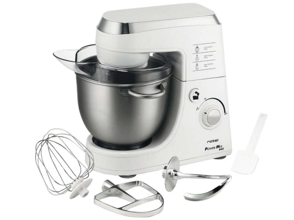 Kraftvolle Küchenmaschine mit grosser Chromstahl-Schüssel (4 l). Mit Knethacken und zwei Schwingbesen zum einfachen Mixen, Rühren und Kneten. Mit Spritzschutz-Abdeckung, 5 Geschwindigkeitsstufen und Impulsstufe. Sicherheitsverriegelung, einfaches Anheben des Armes. Leistung 350 Watt.