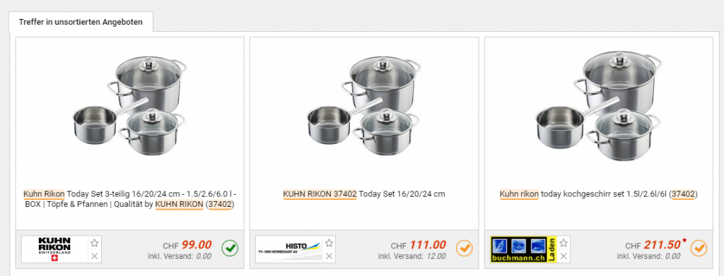 Bei nettoshop gibts das dreiteilige Today Set von Kuhn Rikon zum Aktionspreis von CHF 69.-. Laut toppreise soll das Set bei Kuhn Rikon direkt 99 Franken in Aktion kosten.