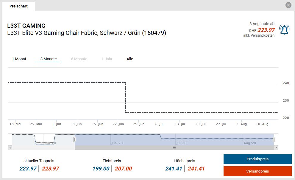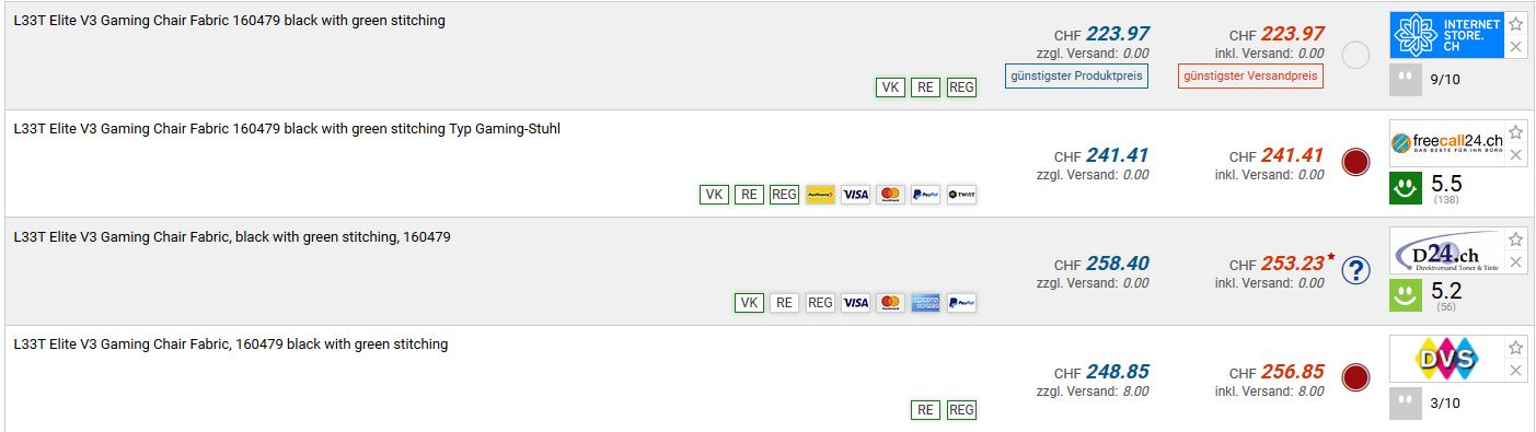 Bei digitec gibt es heute den L33T Elite V3 Gaming Stuhl im Tagesangebot für den neuen bestpreis von CHF 189.-. Der vorherige Bestpreis war CHF 207.-. Der zweitbeste Preis beträgt CHF 223.97.