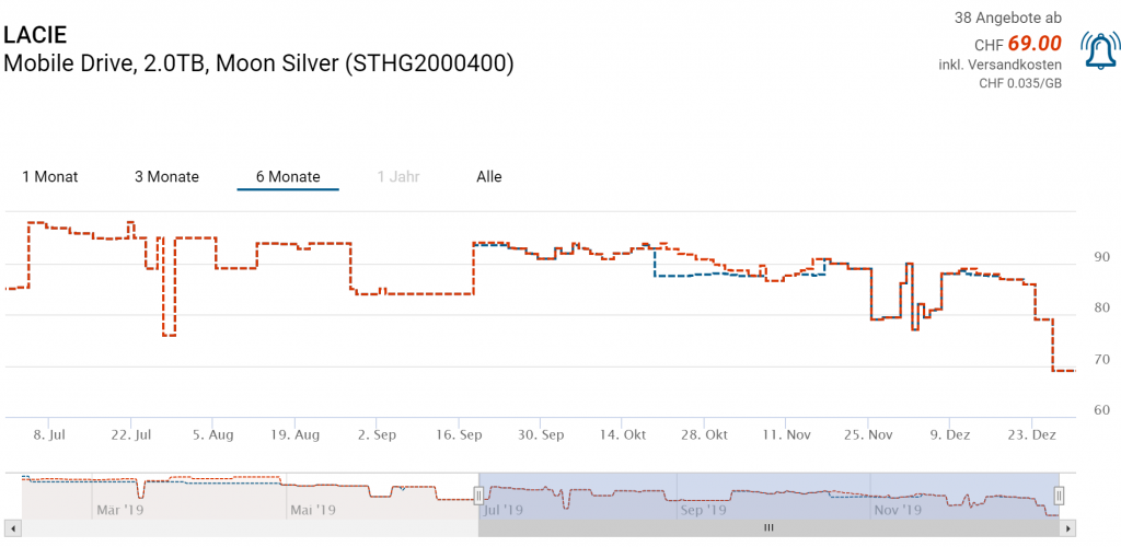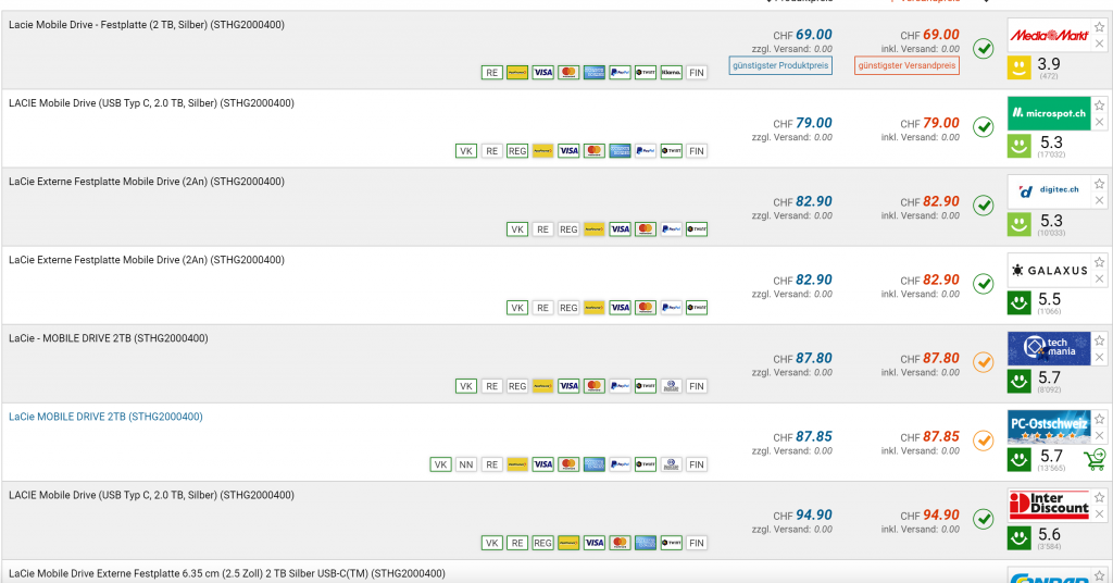 Bei MediaMarkt gibt’s die LACIE Mobile Drive Festplatte (2 TB, Silber) im SALE für CHF 69.- Zweitbester Preis liegt bei CHF 79.- Bisheriger Bestpreis war CHF 75.90
