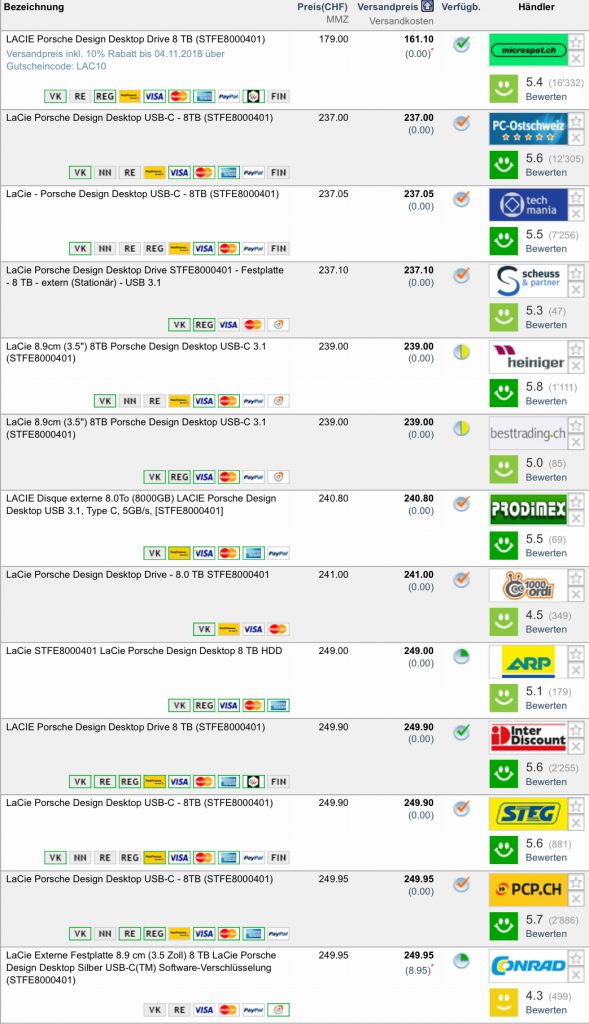 Bei microspot gibt es aktuell das LACIE Porsche Design Desktop Drive mit 8.0TB für 179.- CHF.