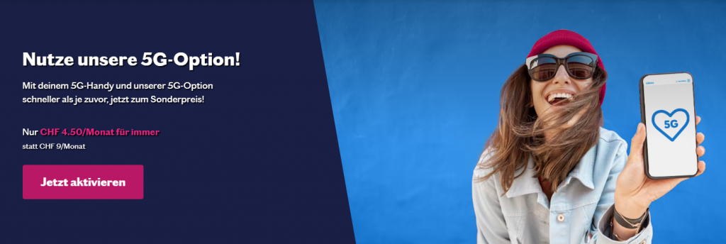 Bei Lebara erhält ihr derzeit für eure Mobile Abos die 5G Option für 4.50 CHF statt 9.- CHF pro Monat. Der Rabatt ist solange gültig, bis ihr euer Abo auflöst.