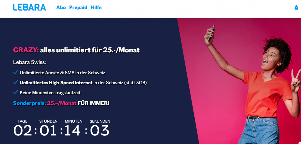 Bei Lebara gibt es jetzt noch 2 Tage lang das Mobile Abo „LEBRA Swiss“ auf zwei Arten „vergünstigt.“