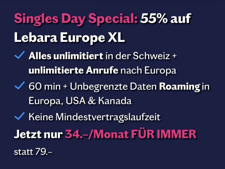 Lebara Swiss Flat 20.- / Europe XL 34.- (für immer)