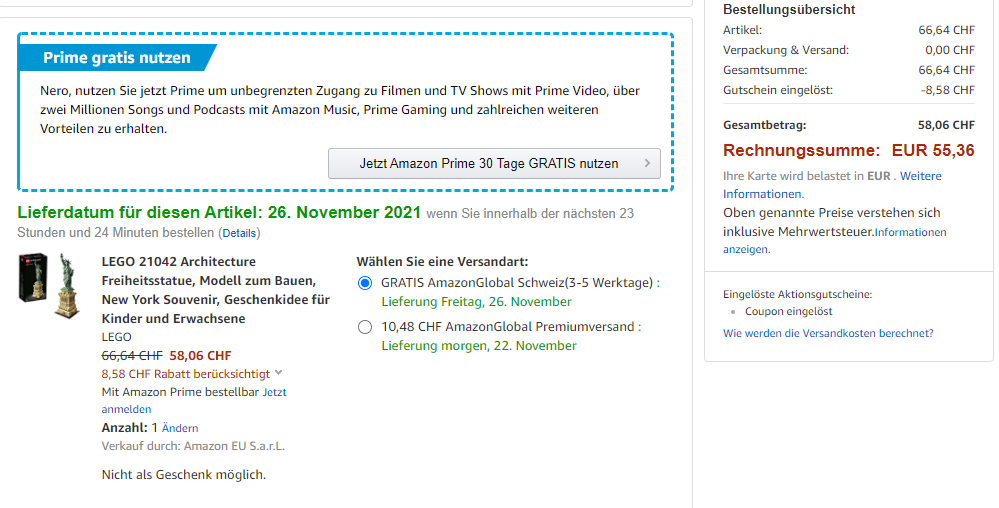 Bei amazon.de gibts die LEGO - Architecture Freiheitsstatue (21042) zum Bestpreis für CHF 67.14 inkl. gratis Versand in die Schweiz