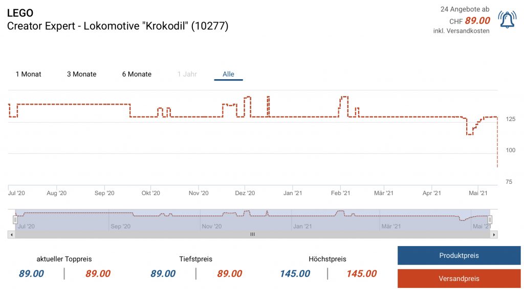 Bei brack gibt es aktuell die LEGO Creator Expert - Lokomotive „Krokodil“ (10277) für 89.- CHF.