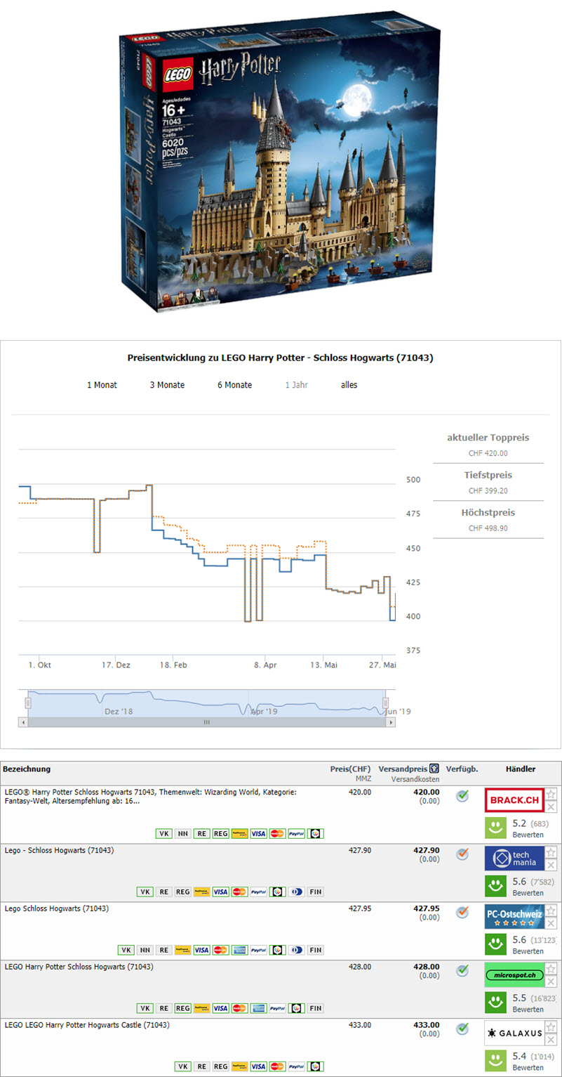 Bei Smyth Toys gibt es momentan das Set LEGO Harry Potter - 71043 Schloss Hogwarts zum Bestpreis von CHF 329.95.