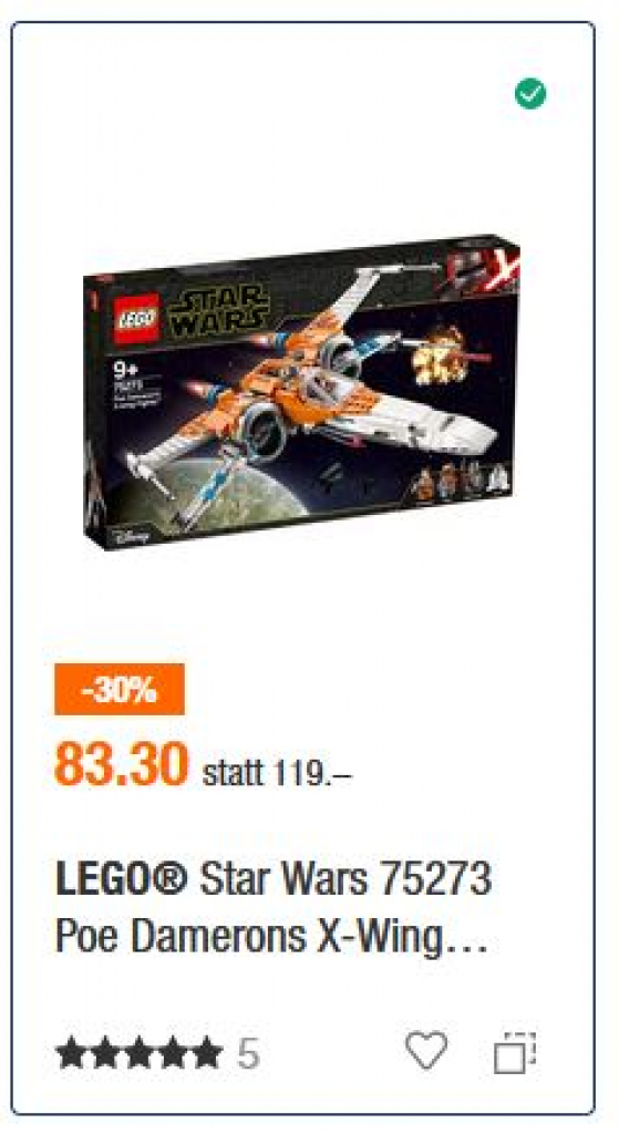 Unter anderem den Poe Damerons X-Wing Starfighter™ oder das Imperial Shuttle 75302.