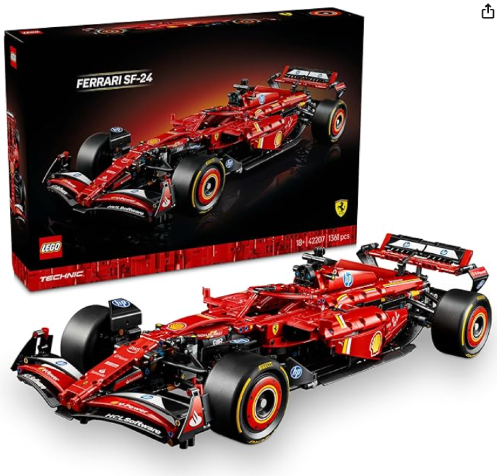 - Bauset mit einem F1-Rennauto für Erwachsene: Hol dir die Poleposition mit dem LEGO Technic Ferrari SF-24 F1 Rennwagen; Das Modell aus diesem Bauset hat jede Menge Funktionen, die das Herz jedes F1-Fans höher schlagen lassen