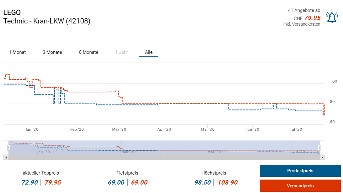 Bei Amazon gibts derzeit ein weiteres Lego -Set zum guten Preis. Dieses Mal ists ein mobiler Kran-LKW, bestehend aus knapp 1300 Teilen. Laut toppreise beträgt der Vergleichspreis in der Schweiz knapp 84.30 bei Galaxus, der Tiefstpreis soll dabei 69 Franken vor wenigen Tagen betragen haben.