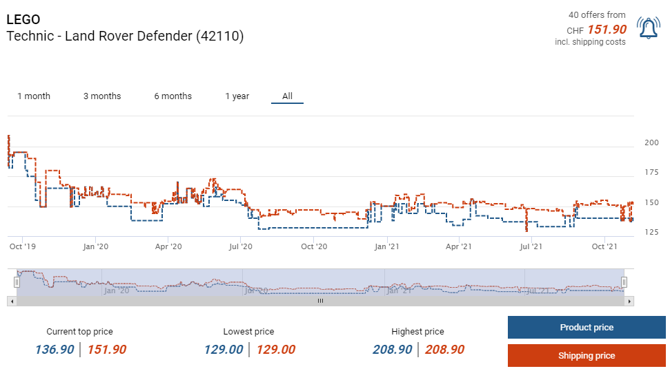 Bei amazon.fr gibt es aktuell den LEGO Technic - Land Rover Defender (42110) für 114,57€.