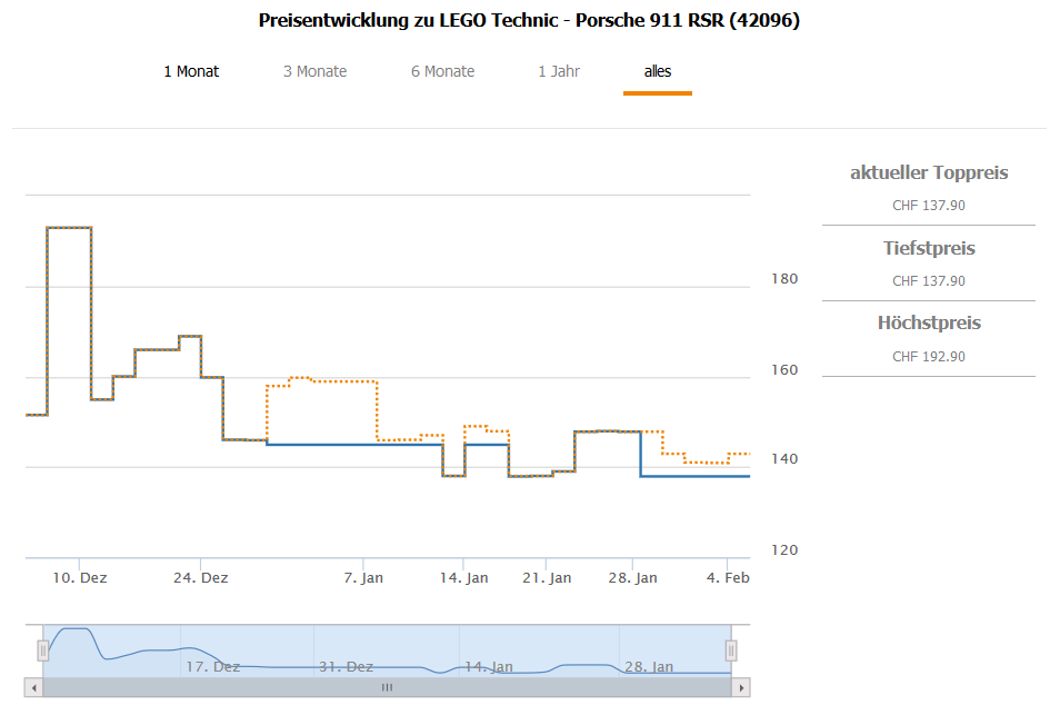 Gemäss toppreise war der bestprice bislang bei 138.- CHF, der zweitbeste Preis liegt aktuell bei 142.90 CHF.