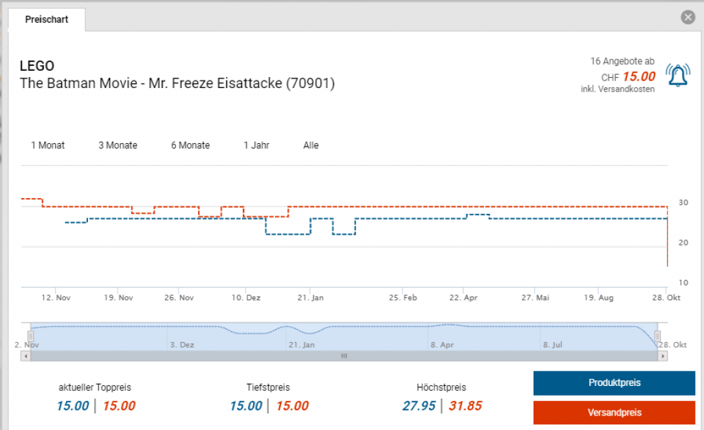 Nun ist auch das LEGO The Batman Movie - Mr. Freeze Eisattacke Set reduziert. Man erhält es für den neuen Bestpreis von CHF 15.-. Der vorherige Bestpreis war CHF 27.40. Der zweitbeste Preis beträgt CHF 29.90.