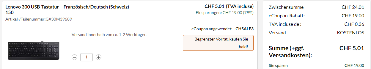Kleiner Trick, wenn ihr ohnehin den Deal mit dem Ideapad 5 pro nehmt könnt ihr unter Zubehör diese Tastatur für geschenkte 0.99CHF mit dazu konfigurieren.