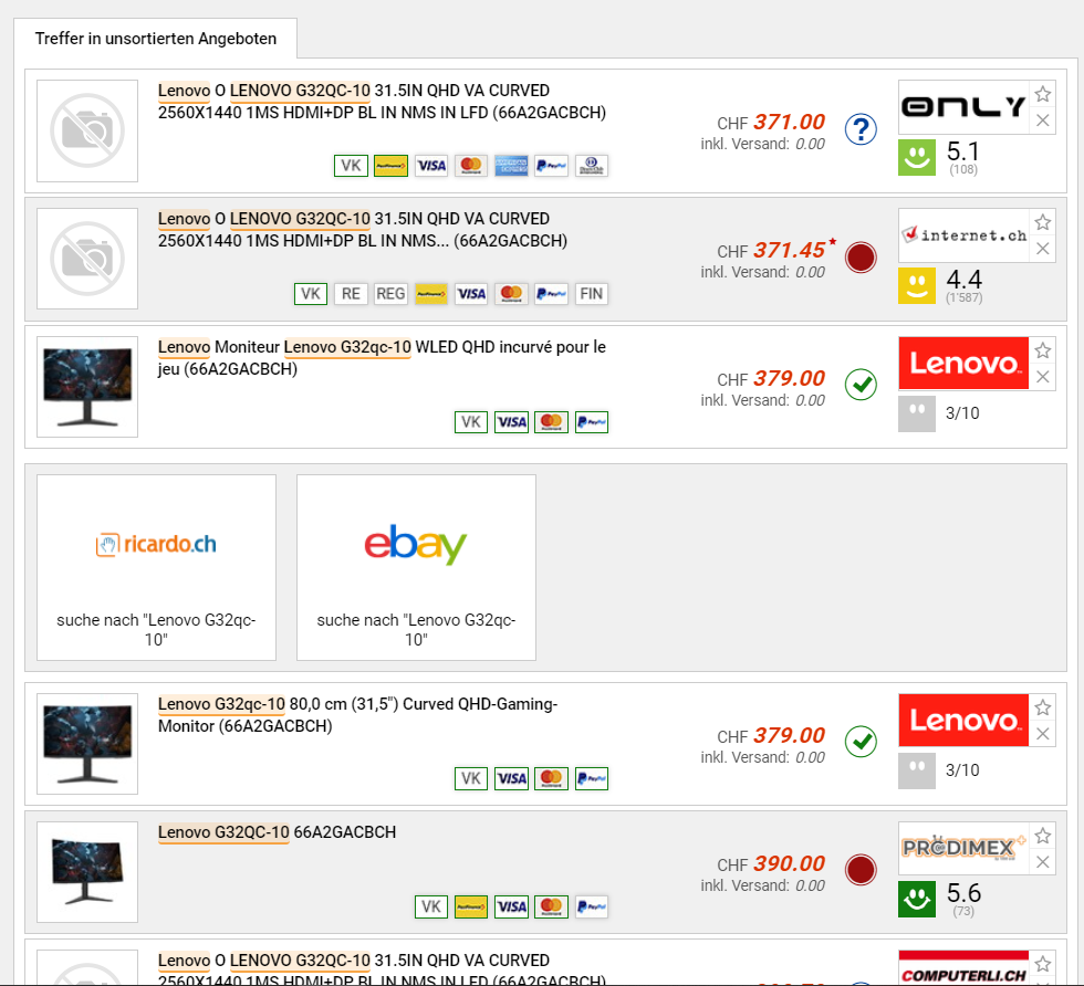 Im Lenovo Store gibts derzeit ein attraktives Angebot zu Gaming-Bildschirm G32QC-10 von Lenovo. So bezahlt ihr für den Monitor mit dem Promocode „SCREEN30“ gerade mal noch knapp 265 Franken anstatt 300 Franken (Amazon). In der Schweiz würden die Preise gar bei geradezu frechen 371 Franken starten. Des Weiteren gilt noch bis zum 30.11. eine Tiefstpreisgarantie auf alle Produkte die im Lenovo Store gekauft werden (heisst, man bekommt die Differenz zurückerstattet auf alles was dort eingekauft wird und später günstiger erhältlich wäre)