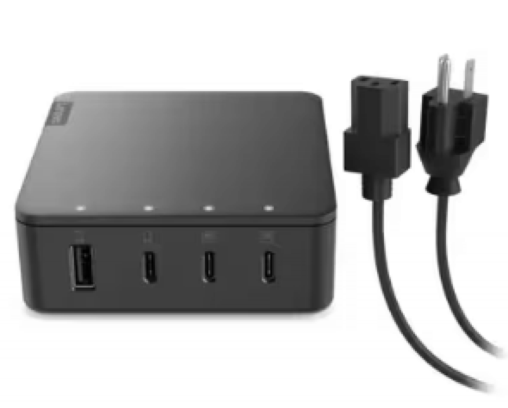 Der Lenovo Go 130 W Multi-Port Charger macht Ihre übrigen Ladegeräte überflüssig. Mit diesem Ladegerät können Sie bis zu 4 Geräte gleichzeitig mit voller Geschwindigkeit laden, einschließlich Laptop und Smartphone. Es gewährleistet eine intelligente Energieverteilung basierend auf der Anzahl der an das Ladegerät angeschlossenen Geräte.